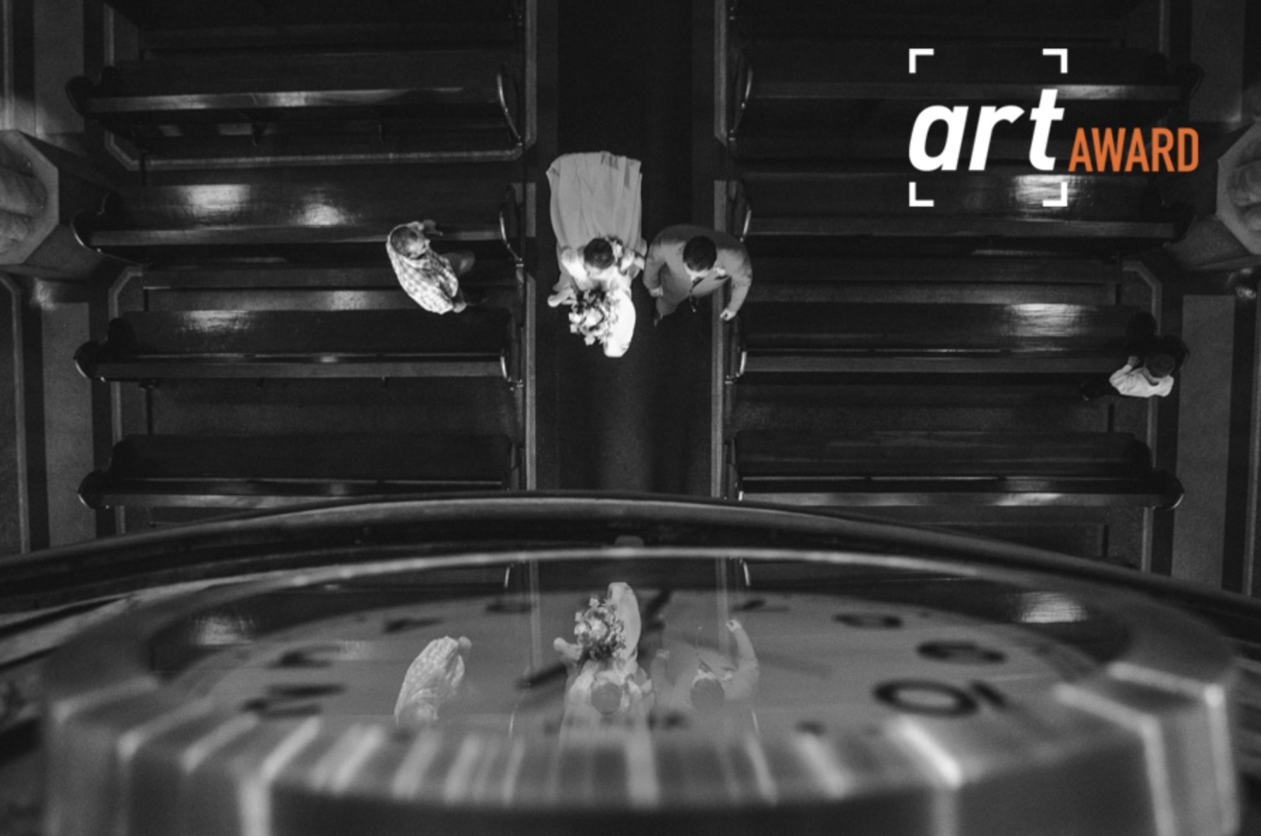Além de contar muito bem parte da história do casamento essa foto foi muito bem pensada e executada. As linhas dos bancos e do relógio nos direcionam para o casal que é o assunto principal da foto, o senhor e a criança entram como personagens secundários e nos leva a imaginar quem são essas pessoas. A imagem chega a causar vertigem e o destemido fotógrafo demonstra ser criativo e ousado. IMPACTANTE!