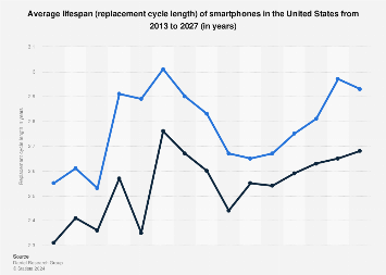 Por outro lado, essa galera aqui afirma que a idade esperada de um smartphone vai cair de quase 3 anos em 2019 pra 2.5 anos em 2025.