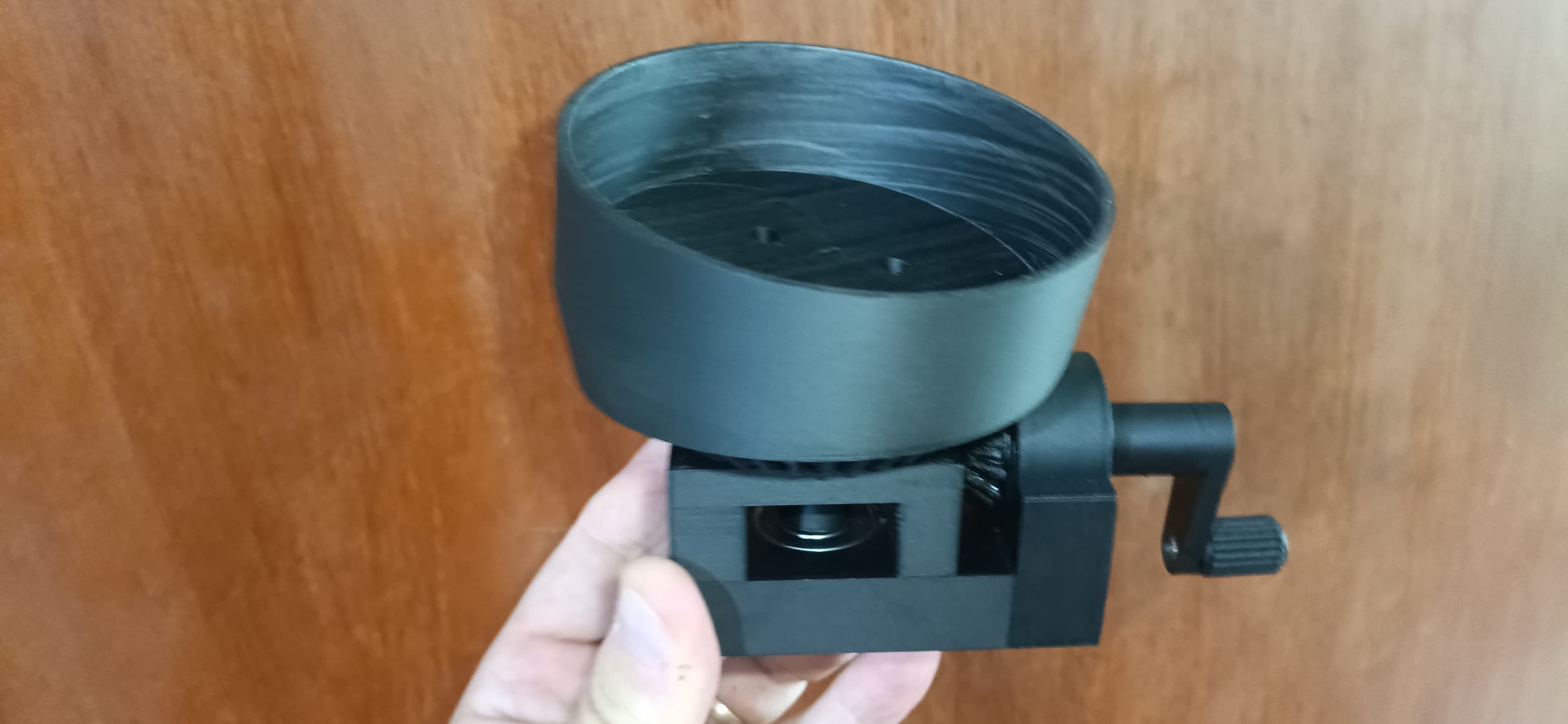 Aí tive uma idéia… Criar um agitador onde o tanque é colocado praticamente na vertical (15 graus pra ser mais exato…) e posto a girar segundo o eixo vertical. Dessa forma, o eixo vertical do tanque descreve uma trajetória cônica. Teremos a agitação desejada em intervalos, podendo parar a agitação a qualquer momento sem que isso cause falhas de imersão…