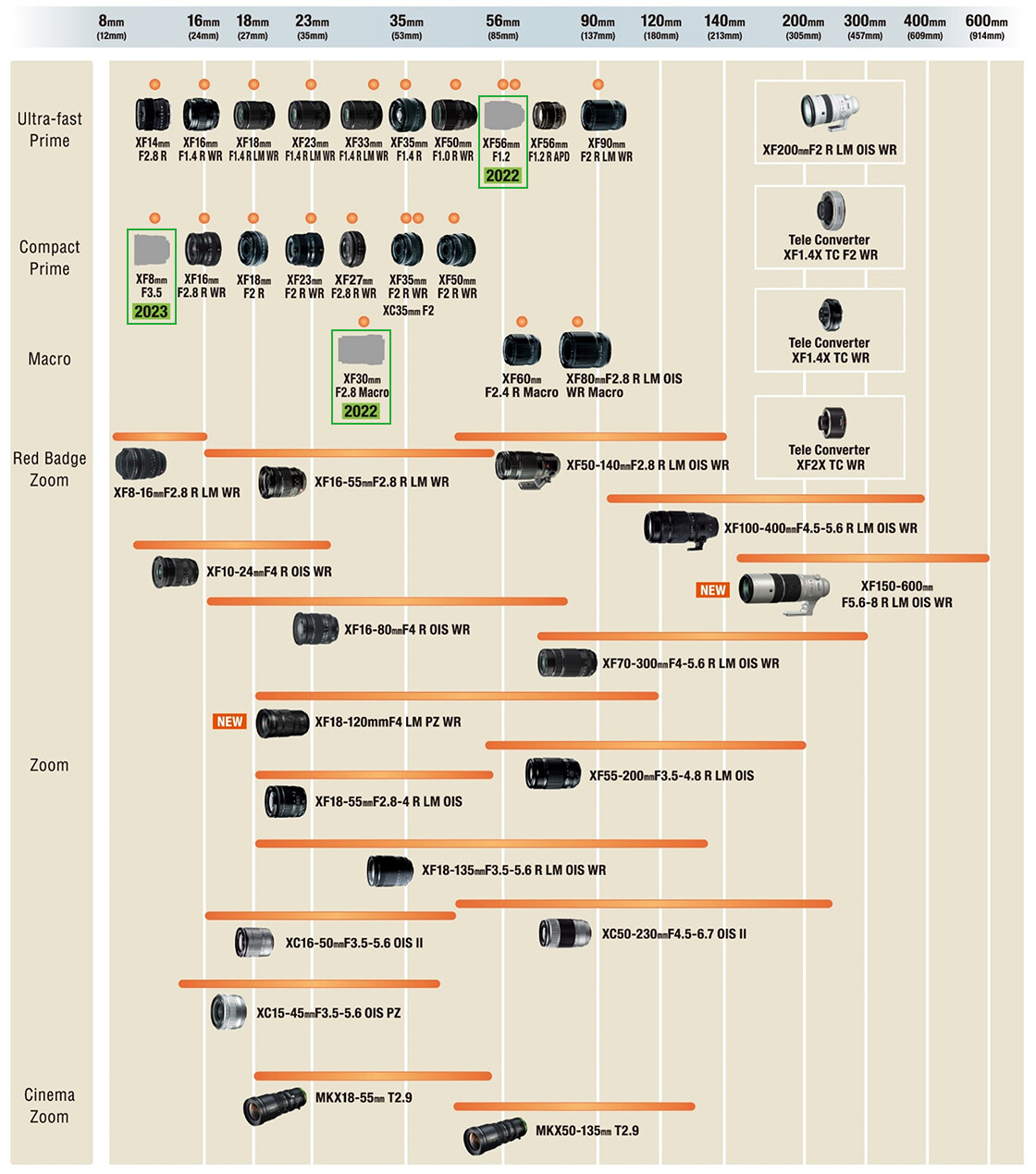 NOTA: XF 8mm f/3.5. “…This new 12mm-equivalent wide-angle lens will be the widest rectilinear lens in the X Series lens lineup. Even with a wide focal length, the lens is said to be compact and lightweight and therefore an ideal choice for a walk-around wide-angle lens…”