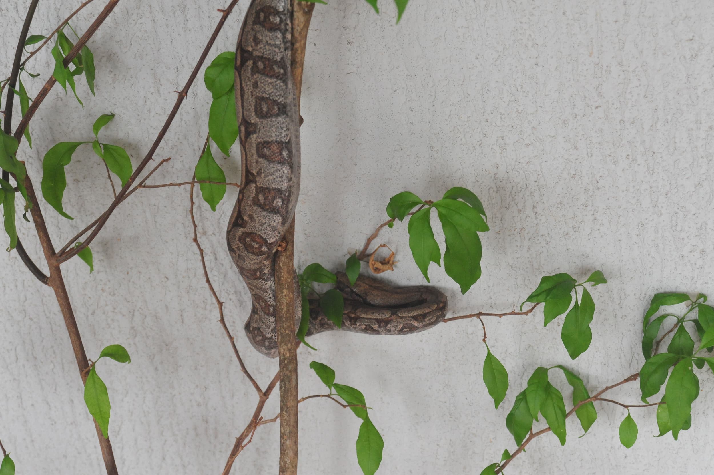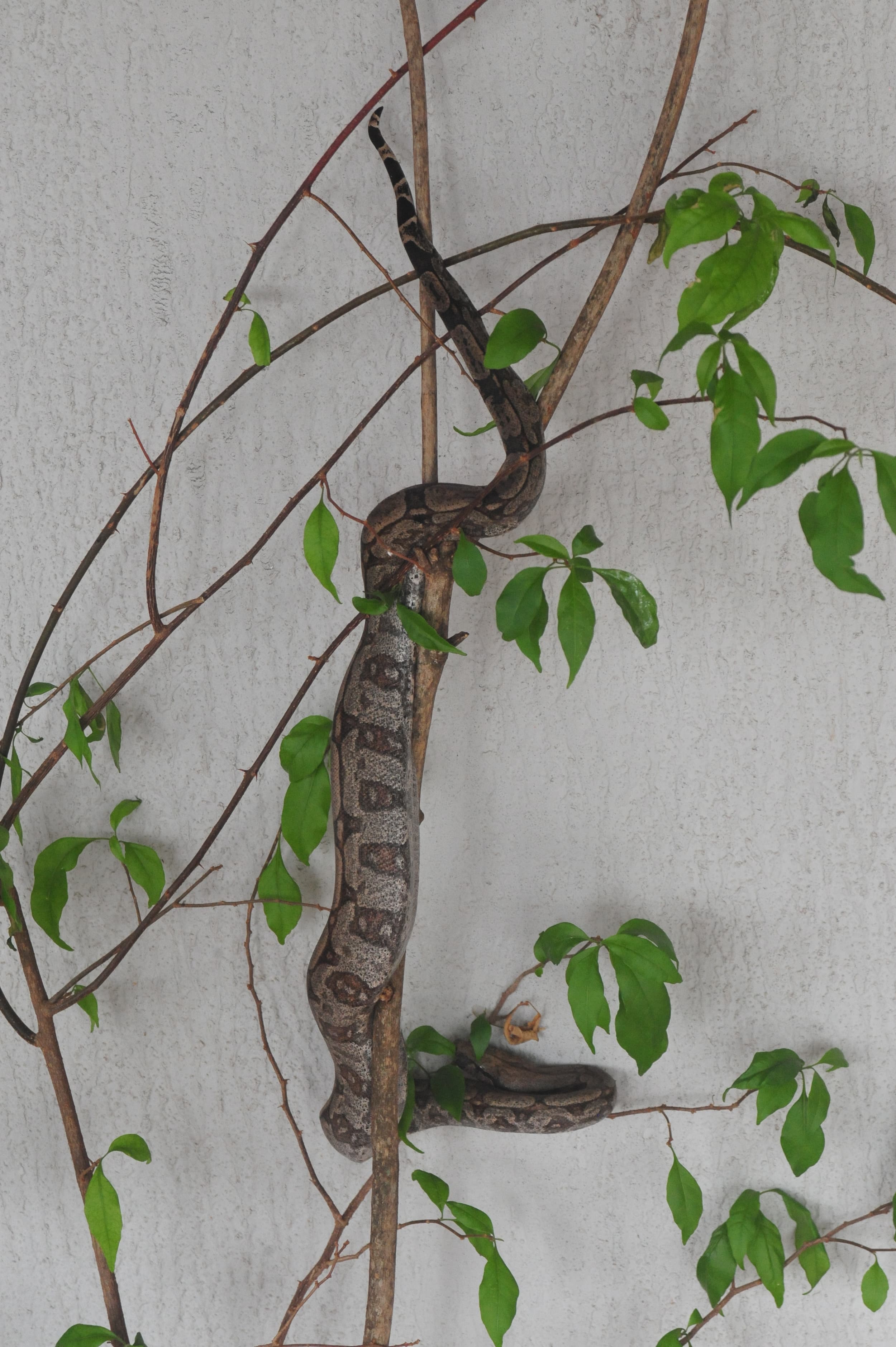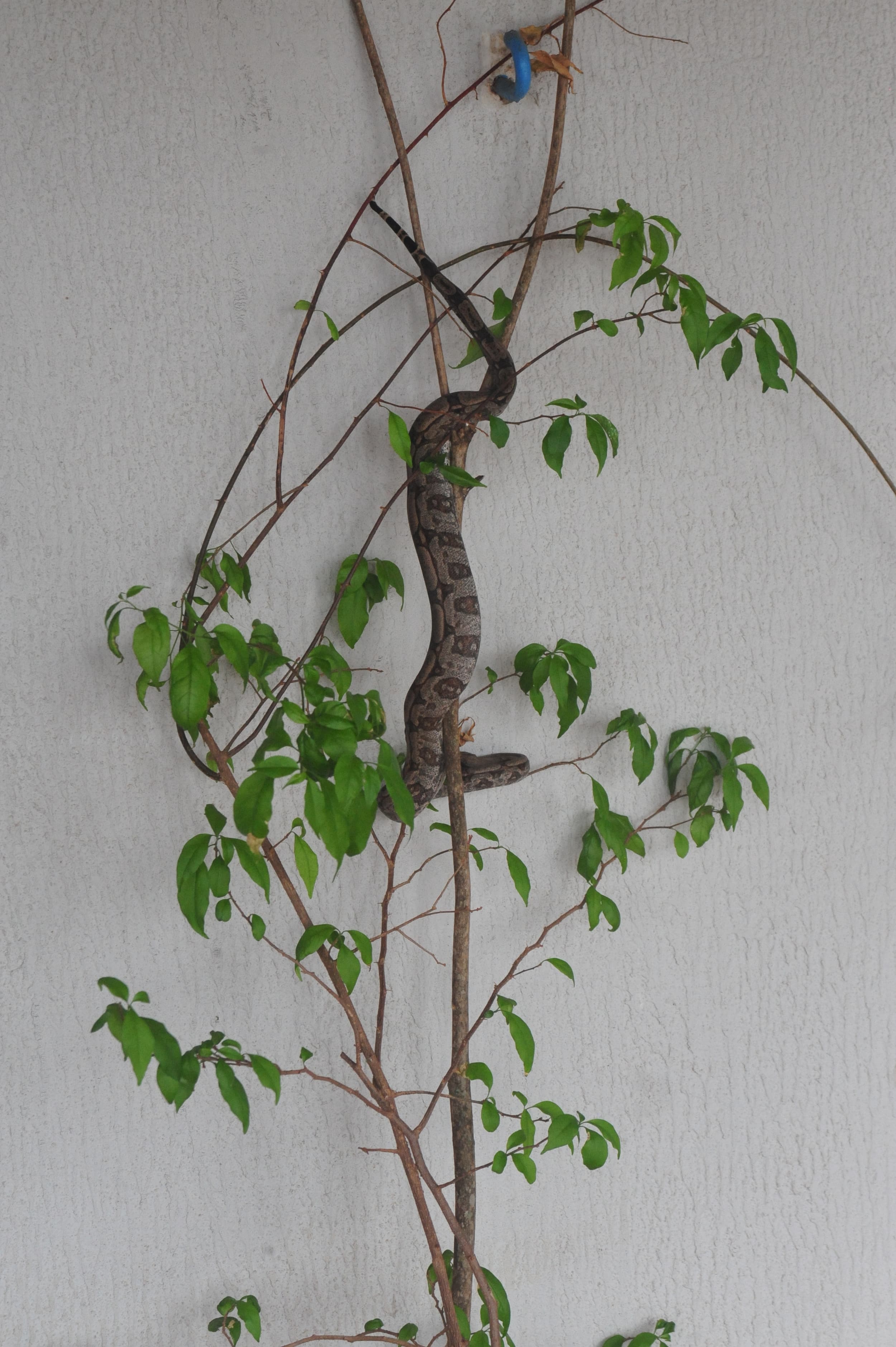 A famosa Jibóia… Não venenosa… Constritora… Mata por sufocação e esmagamento… Aí você mora no mato, vai molhar as plantas na varanda e lá está a JIJI (já apelidamos ela…) tirando um bodinho em sua planta predileta…