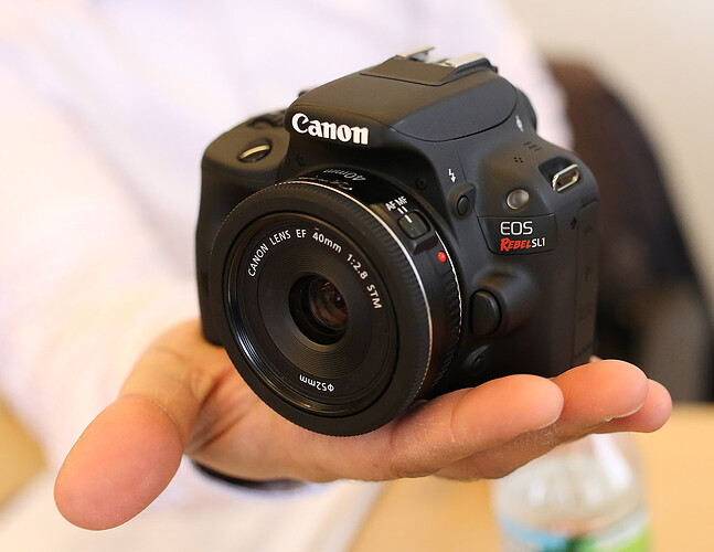 O tamanho deve ficar ótimo, mas acho que ficará um pouco fechada demais (~64mm)… O ideal seria que a Canon lançasse uma EF 22mm, nos mesmos moldes da EF-M 22mm (para a EOS-M), para ser usada com essa 100D, ou pelo menos algo próximo disso. Uma 30/2 pancake, por exemplo, não seria nada ruim…