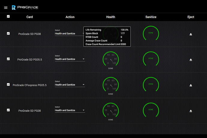 Inclusive a OWC está lançando algo similar com função de monitoramento do estado dos cartões, função de “sanitize” para limpar o conteúdo do cartão e atualização de firmware: