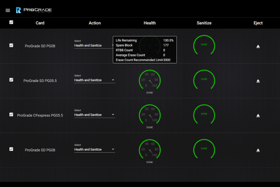 O software mais recente da ProGrade Digital permite atualizar o firmware de um cartão de memória