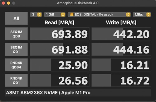 Seguinte, nos primeiros testes deu por volta de 700 de escrita e depois caiu nessa faixa de 450.