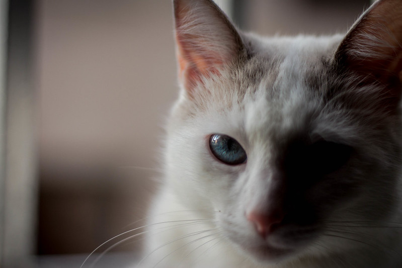Na segunda achei uma foto sem nada de especial… o bichano está enquadrado de uma maneira ruim, e uma sombra grande que evita ver metade do rosto dele (bicho tem rosto??? rs). De positivo é o foco cravado no olho do gato, já que parece que a foto foi feita com a lente bem aberta, e acertar o foco é difícil nessas condições. As vezes a galera foca no nariz ou em outras partes, mas em minha singela opinião foco de retrato em geral (mesmo de bicho) em 90% das vezes é no olho que ter que ser dado pra foto ficar agradável.