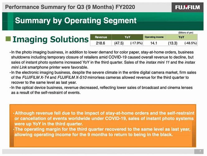 Eu diria que nas condições atuais, não perder mercado pra Canon/Sony já é um bom resultado. Tanto X-T4 quanto X-S10 parecem ter sido bons lançamentos de 2020, embora eu tenha lido/visto vários influenciadores dizendo que a X-T3 é tão boa que não vale a pena comprar a X-T4. Ainda é uma boa comprar câmera da marca, mas a X-T3 gera menos margem que a X-T4. Já a X-S10, se eu pudesse, eu comprava uma.