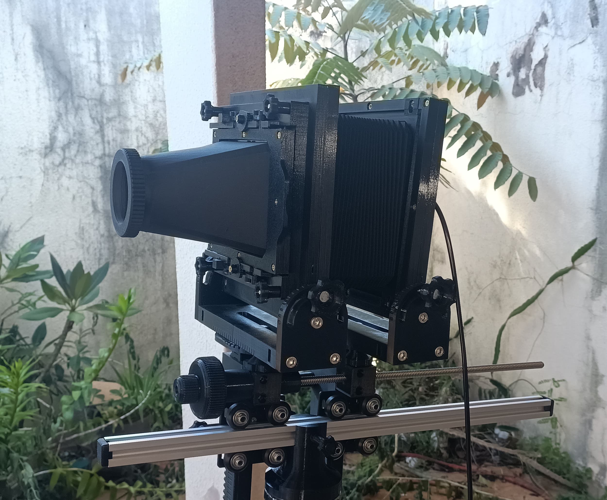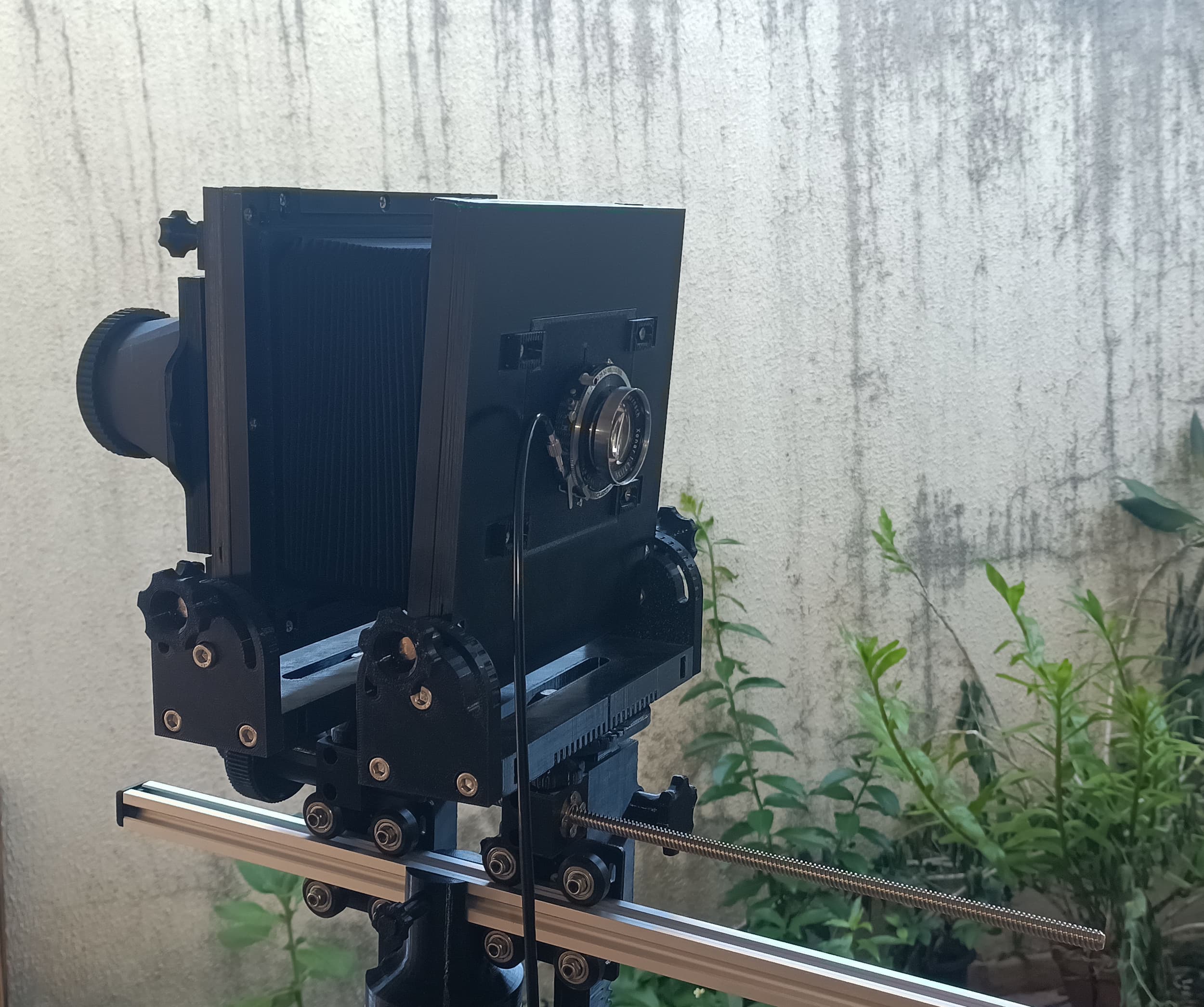Mas não tem como chegar a câmera inteira pra frente e pra trás no trilho? Não entendi essa. Talvez fazer um mecanismo que, ao focalizar, mova os dois planos igualmente, afastando ou aproximando? Eu uma vez fiz um focalizador helicoidal que funciona assim.
