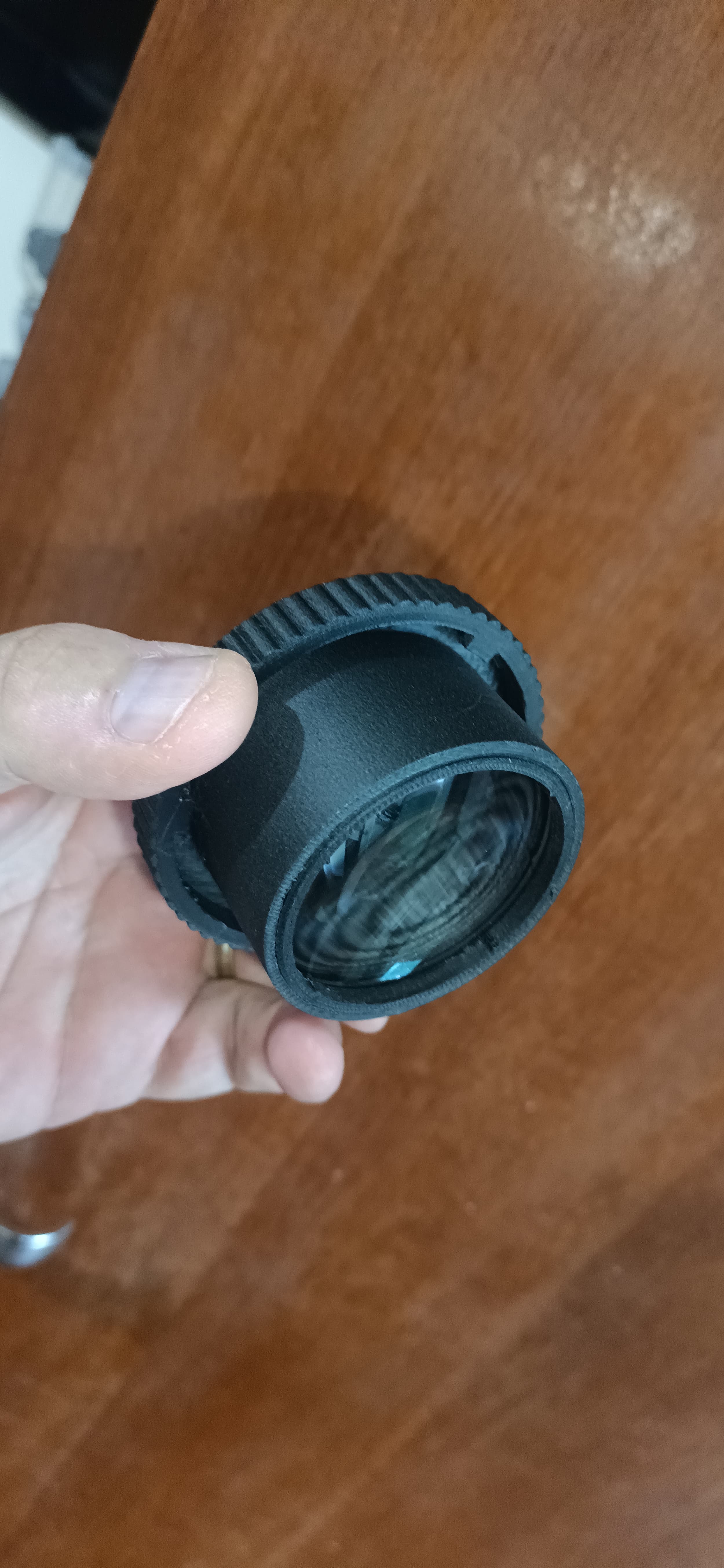 Prototipagem é um eterno teste de paciência… Você calcula, simula, desenha, redesenha, mede… Aí, depois de pronto - ou quase - percebe que por interferência mecânica do pé principal com os suportes dos planos, ela não fechou o suficiente pra conseguir o foco no infinito…