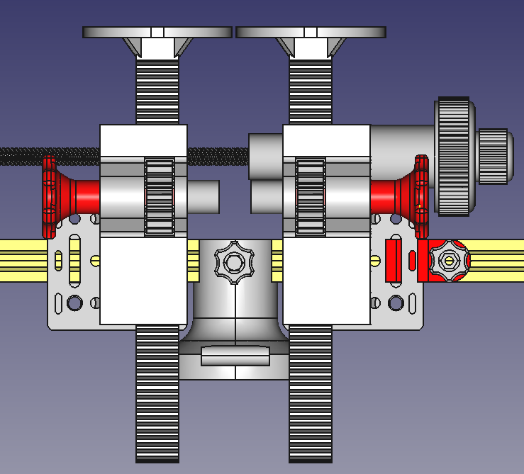 Sim! Mas são várias peças impressas e montadas. Vou colocar uma vista explodida aqui. É um redutor planetário com relação 1:4. Copiei a ideia dos velhos ampliadores Fuji “Cabeça Branca”. Obviamente o botão de foco dos Fuji, era muito mais sutil e delicado do que o do meu projeto, mas tá funcionando direitinho…