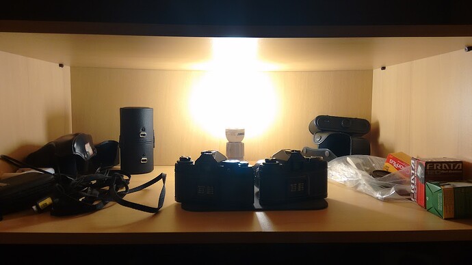 Estou montando um local para deixar as minhas câmeras e acessórios, não coloquei tudo ainda, mas a lampada fluorescente é recomendado existe algum pró ou contra(fungos ou etc)? :assobi:
