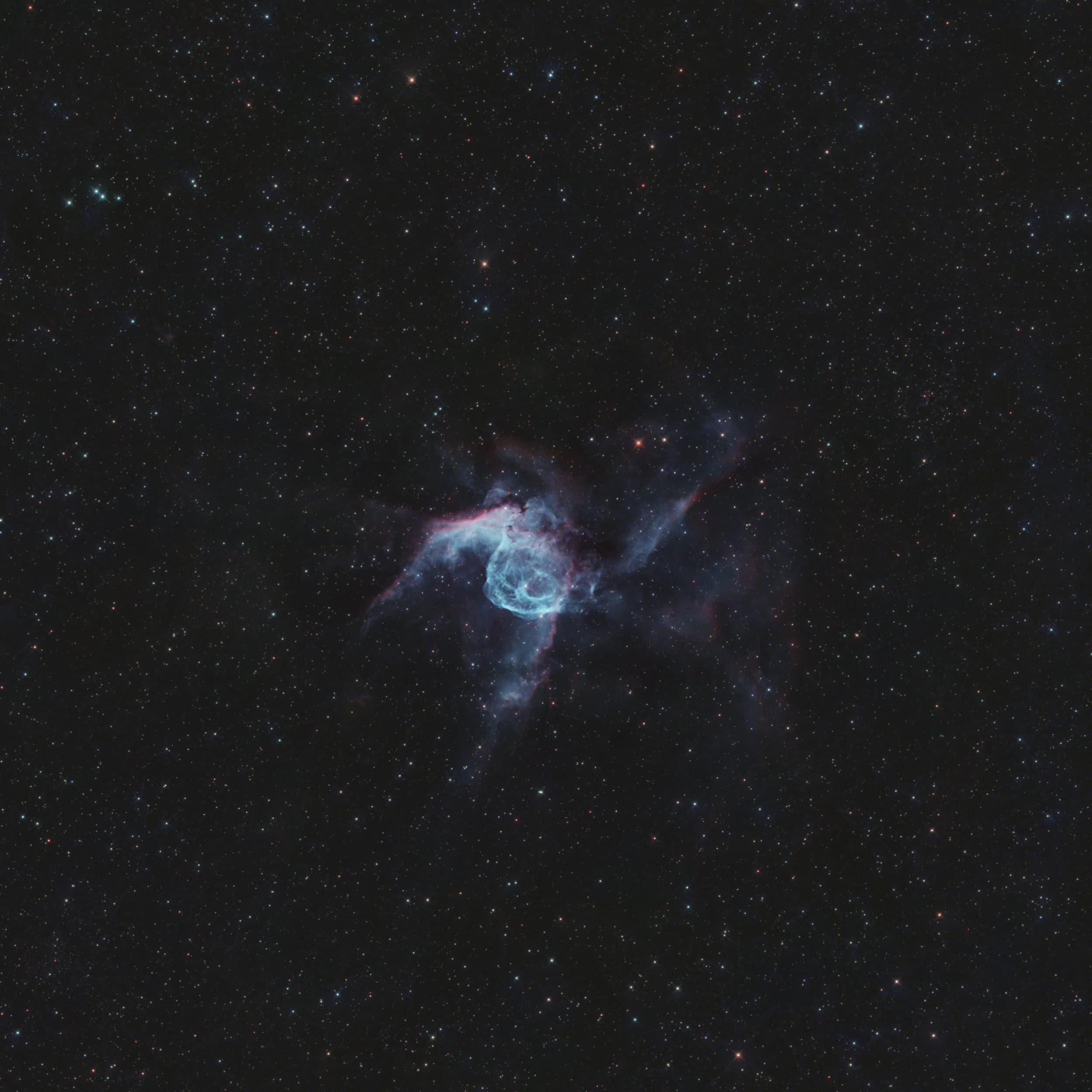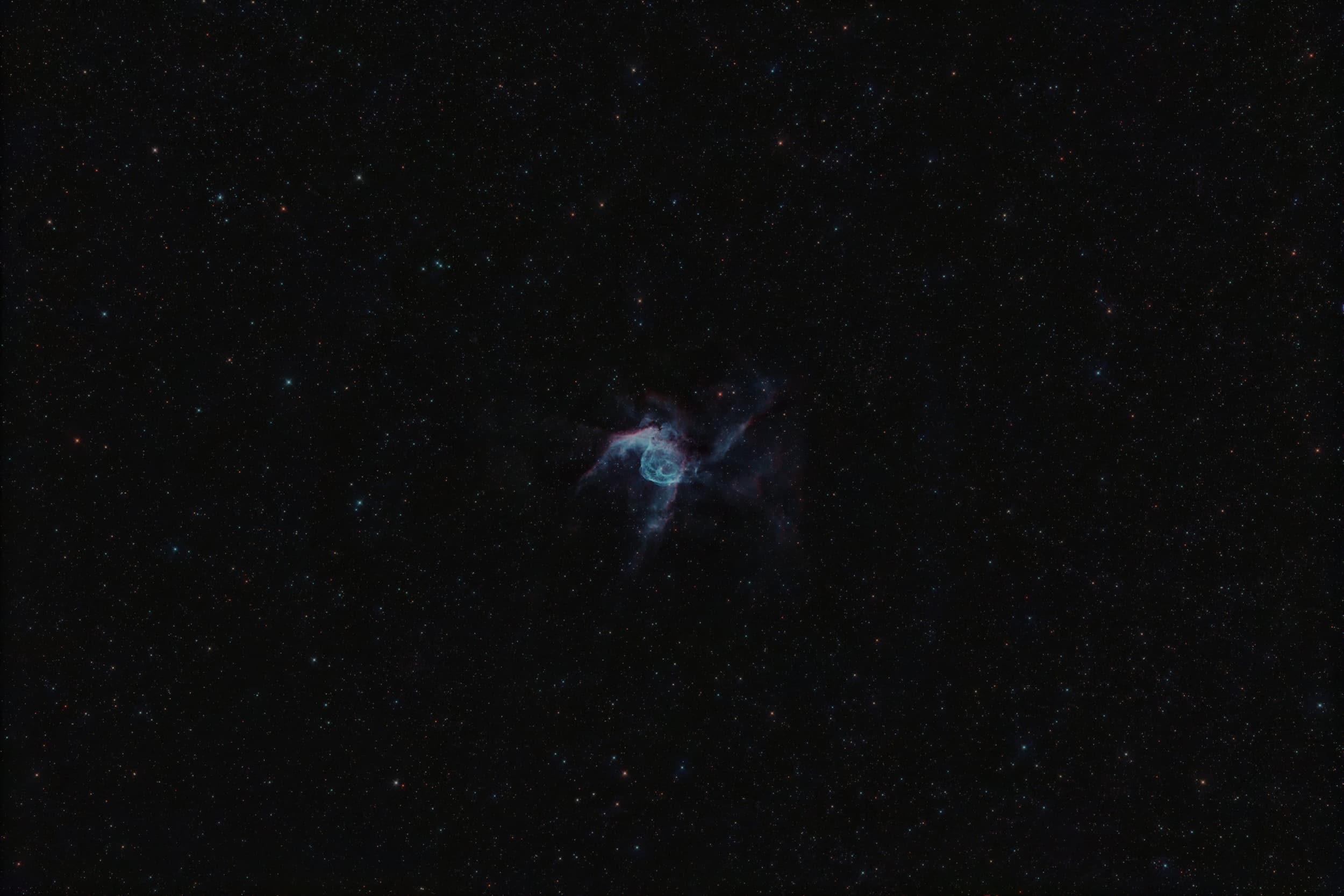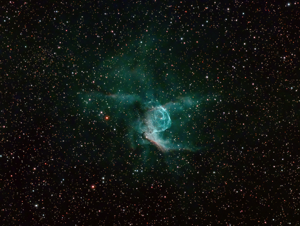 Estou numa luta real com o corretor Starizona Nexus 0.75x, desde a época da imagem anterior. Este corretor, além de corrigir distorções esféricas, diminui o círculo projetado da imagem do telescópio. Por um lado ele aumenta o campo de visão e por outro, ele torna a imagem mais clara. Características muito interessantes, porém a ótica desse adaptador é bem arisca, fazendo com que reflexos internos apareçam bem pronunciados nas imagens finais. Já pintei de preto e cobri com papel camurça tudo o que eu podia dentro do telescópio, adicionei um parassol enorme em um telescópio que não precisaria de um, já desmontei o corretor e pintei as paredes de preto também. Ainda assim, ele continua dando trabalho em vários assuntos. Me parece que ele é especialmente sensível à luz azul. A imagem completa, com gradientes: