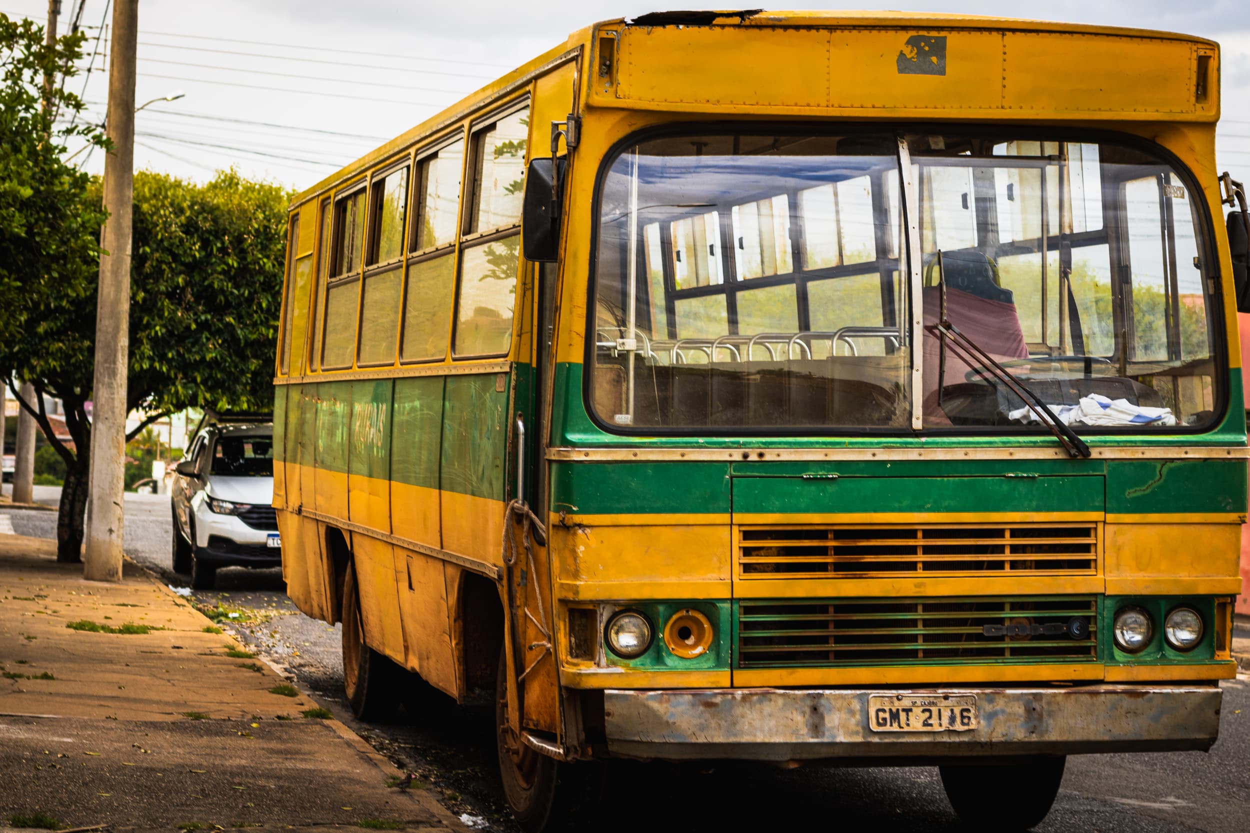 Essas fotos são fruto de minha caminhada por uma cidade do interior do Estado de São Paulo, chamada Cajuru. Quando passei por esse ônibus, não pude deixar de registar. Na hora ele revelou a força do tempo, do trabalho, da poeira. Hoje, enquanto fazia as correções de cores, eu realmente me atentei às cores. Verde e amarelo, as cores da nossa bandeira ol, que representam nossa nação e nosso povo. Assim como esse ônibus, símbolo de resistência, suor e trabalho no campo. Temos uma nação movida majoritariamente pela força dos trabalhadores rurais que trabalham no campo.