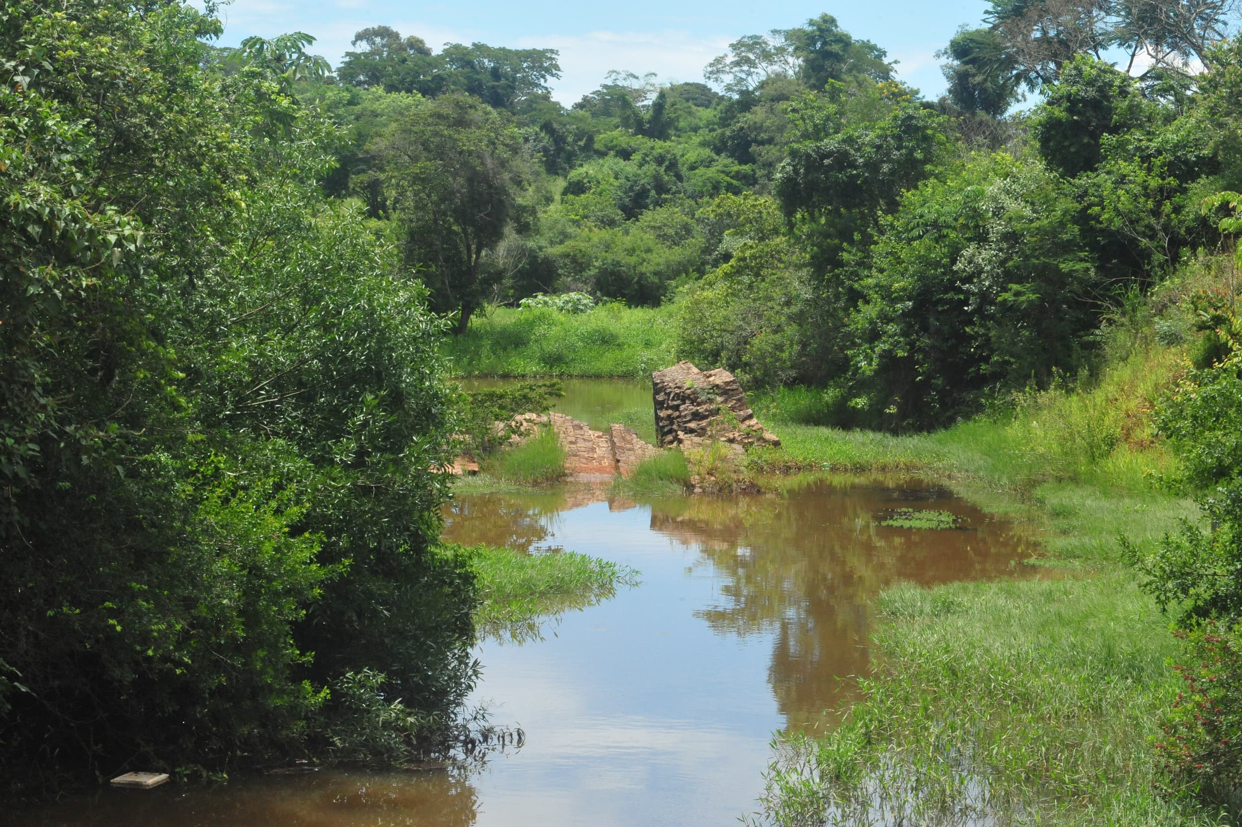 Fechando o tour… Este, é o Rio Batalha, que marca a divisa entre o município de Piratininga e Bauru. Ao fundo, ruínas da antiga ponte da ferrovia…