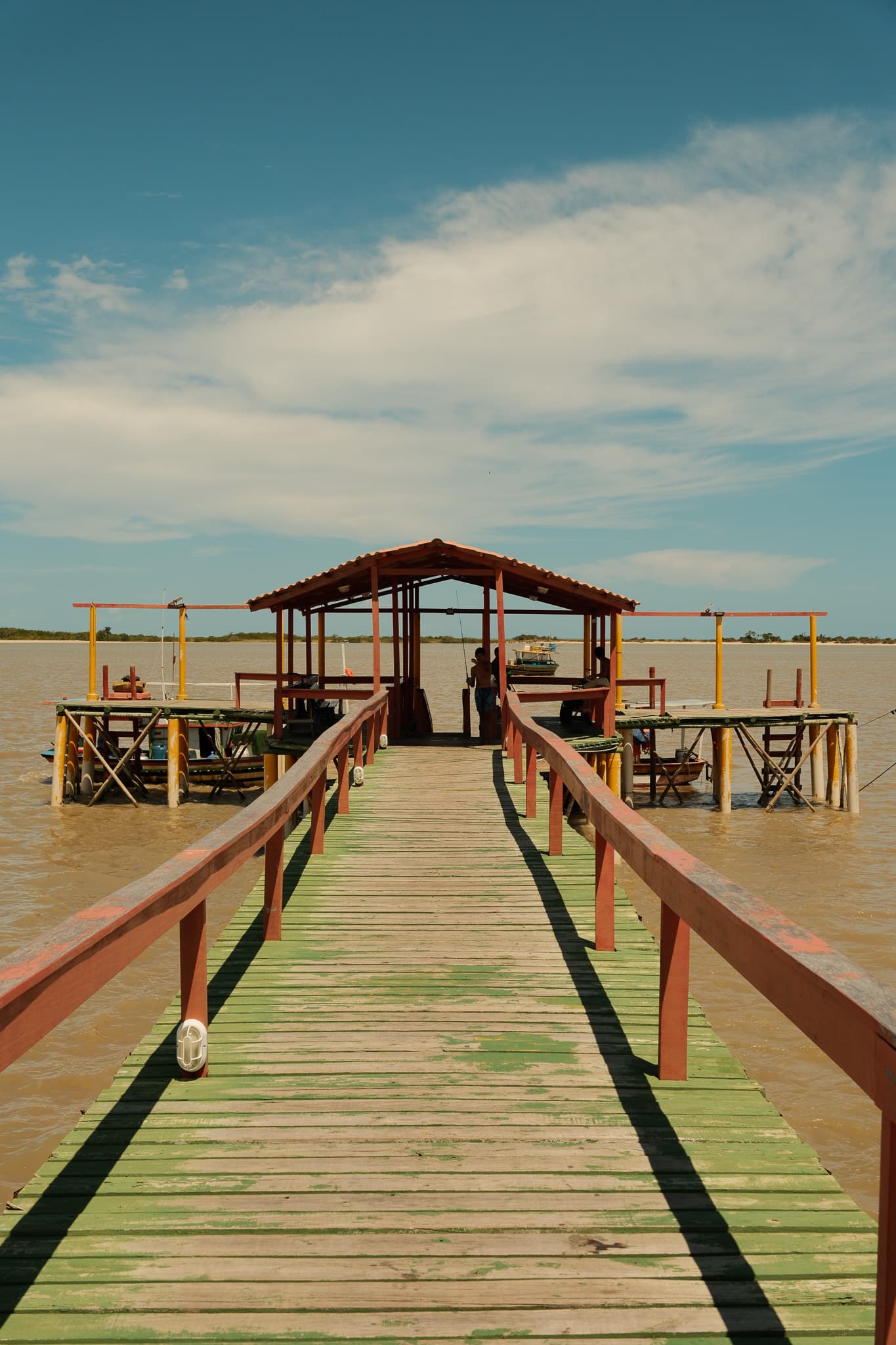 Nossa parada em Cumuruxatiba foi um dos pontos altos. O nome, de origem indígena, carrega uma poesia geográfica: significa “Grande variação da maré”. E é exatamente isso que se vê: o mar recua centenas de metros, revelando bancos de areia e corais. O icônico Píer de Cumuruxatiba, construído originalmente para o escoamento de madeira, hoje é um esqueleto de madeira que se estende mar adentro, servindo como o cartão-postal perfeito para quem ama fotografia.