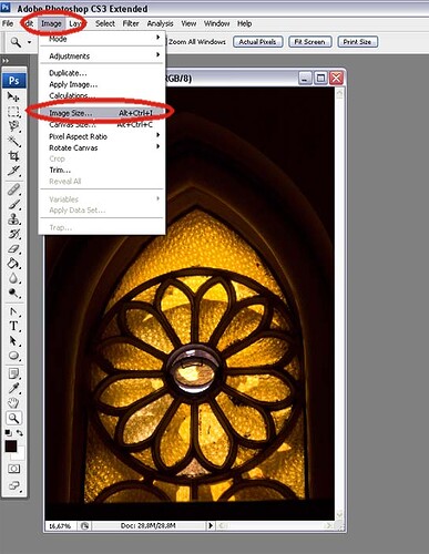 PASSO 3: Se você não sabe como redimensionar suas fotos, use o comando (Alt + Ctlr + I) ou então siga o caminho: IMAGE/ IMAGE SIZE, como na foto abaixo. Se você sabe, pule para o PASSO 5.