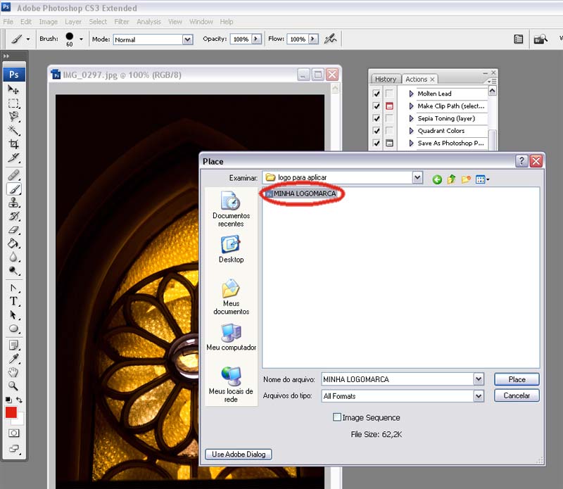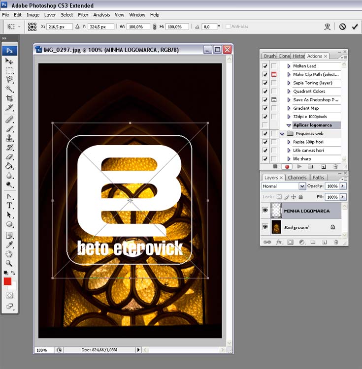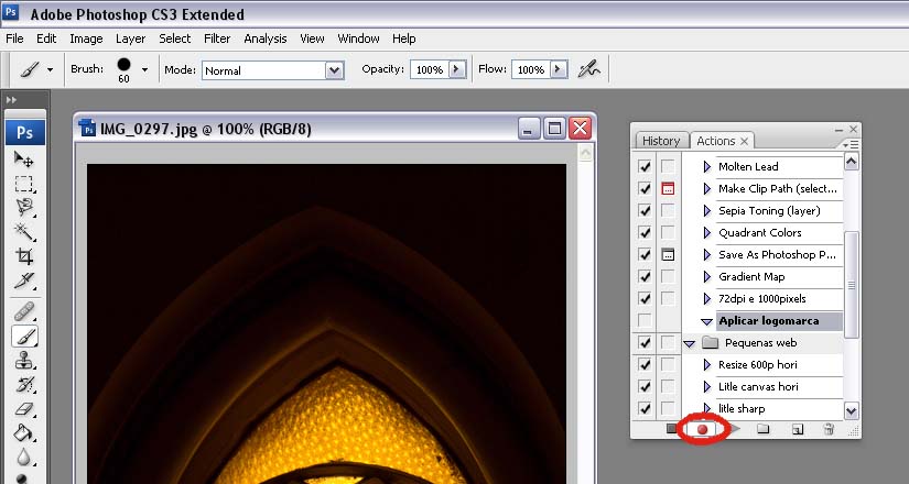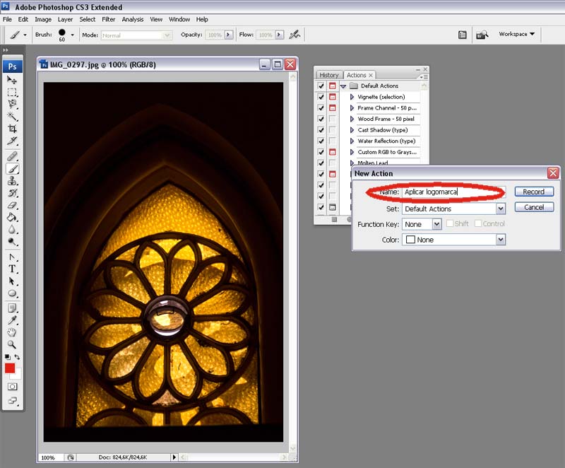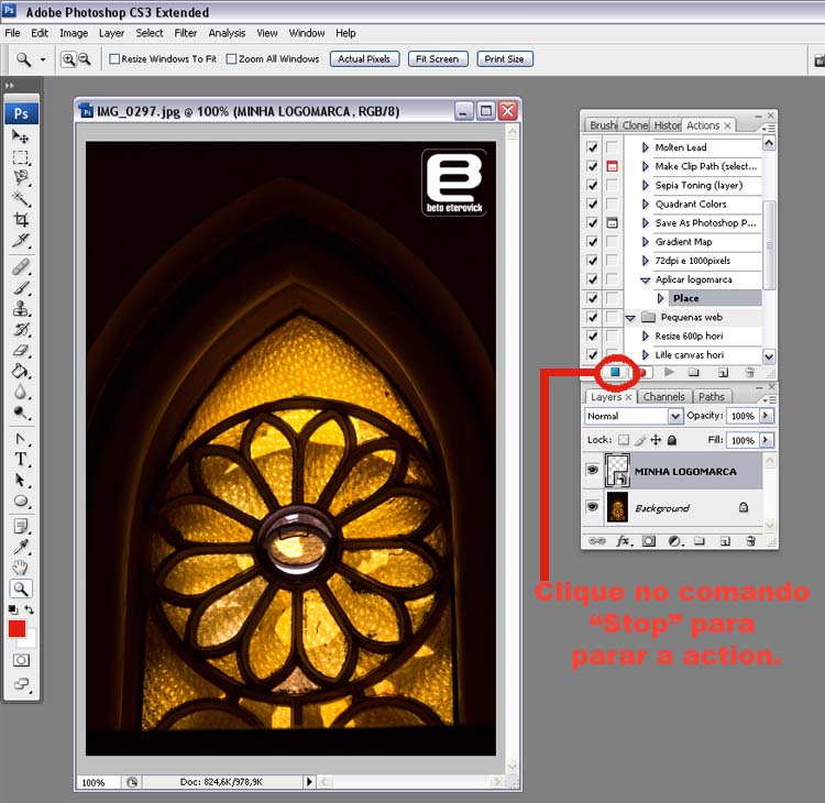 Aprendendo passo a passo a colocar sua marca em suas fotos no Photoshop CS3, criando uma ação.