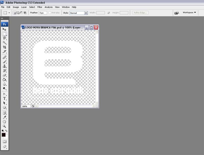OBS.: Se a sua logo foi feita em outro programa, como o Corel Draw, por exemplo, você terá que exportá-la para PSD antes de continuar. (Se ela estiver em corel, abra-a no corel, selecionando ela toda, depois mande exportar (Ctlr + E), marcando a caixa “somente selecionados”, escolha a opção Photoshop (PSD), e depois marque a caixa “fundo transparente”. Pronto.