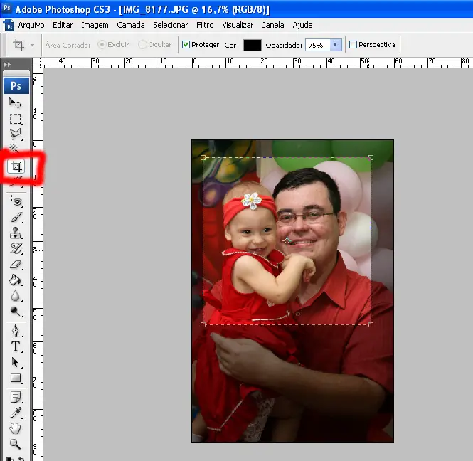 Abra uma foto a ser usada, e recorte no tamanho 19x19 cm: