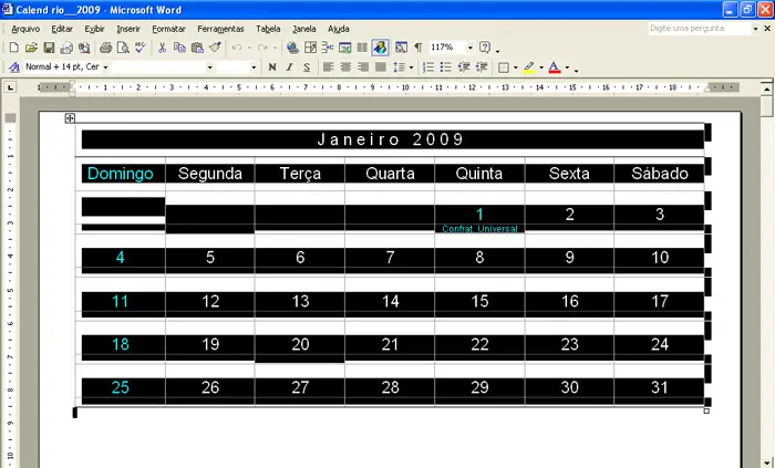 Descompacte, e abra o arquivo Calendário__2009.doc