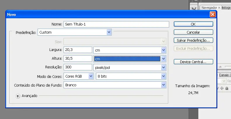 Obs: o laboratório que faço impressões, usa o tamanho 20,3 x 30,5 com 300 pixel/pol. Confirmar o tamanho exato da impressão a ser usada.
