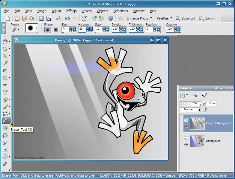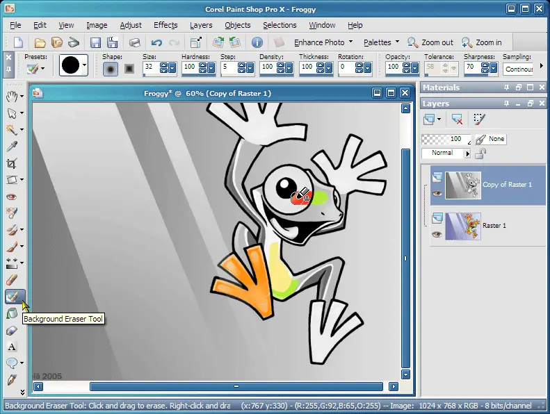Para saber mais sobre o Background Eraser Tool http://www.corel.com/content/pdf/paintshop/tutorials/Tutorial5_Removing_Photo_Backgrounds.pdf