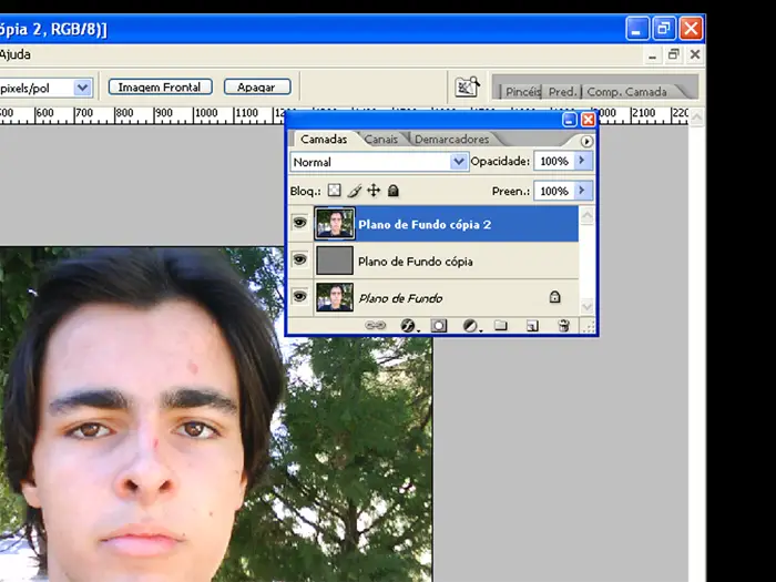 1- Abra a imagem no Photoshop e duplique a camada plano de fundo