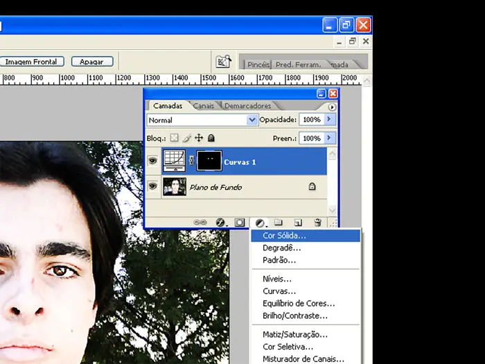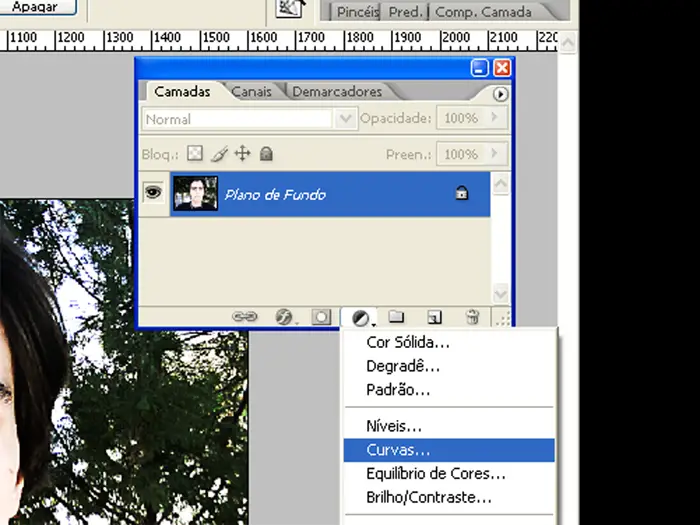 9-Clique no ícone na Janela de camadas CRIAR NOVA CAMADA DE PREENCHIMENTO OU DE AJUSTE e escolha CURVAS.