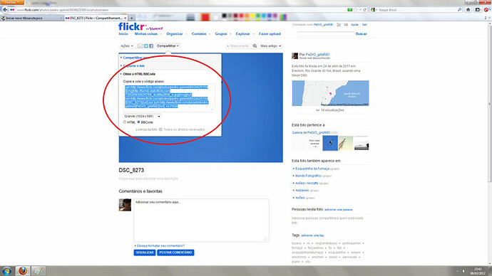 Lembrando que este tutorial é valido para fotos que estão armazenadas no flickr.